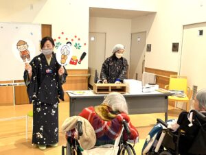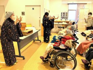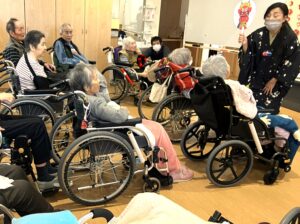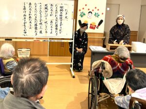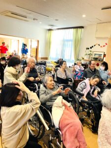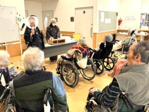 レクリェーションには音楽療法士の山本様と、絵本の読み聞かせの中島様をお招きし、いつも以上に特別なひと時となりました。