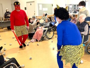暦の上では春となりましたが、まだまだ余寒きびしい折、皆様いかがお過ごしでしょうか。 ケアタウン光の森では、2月3日の節分👹に合わせて、賑やかな「節分豆まきレクリェーション」を開催しました!