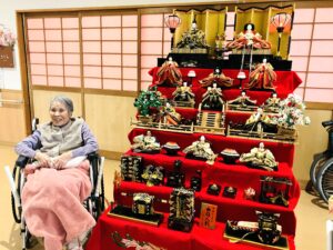 「これはこっちかしら?」「お顔がとっても綺麗ね」と、入居者の皆様と一緒に一つひとつ丁寧に飾り付けを行い、施設内は一気に華やかな桃の節句ムードに包まれました。